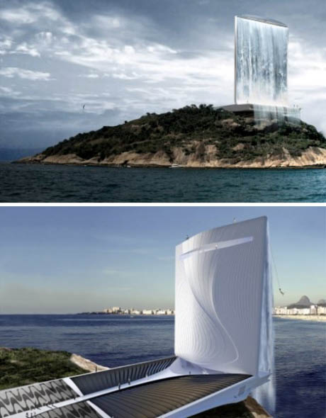 RAFAA建筑設計事務所為2016年巴西里約熱內盧奧運會設計的“太陽能城市塔”可在白天利用太陽能發電,日落后再利用抽蓄水系統發電。它的最大亮點當屬一個又大又高的瀑布,好像來自天空,給人一種超現實的感覺。發電塔將為奧運會提供大量電量,象征大自然力量的瀑布傾瀉而下場面只在特定場合時出現。