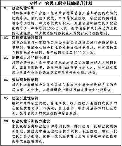 促進以高校畢業生為重點的青年就業和農村轉移勞動力、城鎮困難人員、退役軍人就業。結合產業升級開發更多適合高校畢業生的就業崗位,實行激勵高校畢業生自主創業政策,實施離校未就業高校畢業生就業促進計劃。合理引導高校畢業生就業流向,鼓勵其到中小城市創業就業。