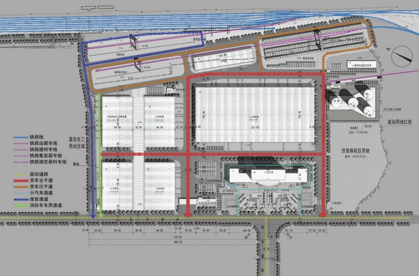 嘉寶物流園區(qū)的總平面布置原則是:根據(jù)項目六大部分的內(nèi)容、流程、內(nèi)外交通運輸?shù)惹闆r,按場地的自然條件、功能要求與專業(yè)的設(shè)計規(guī)范進行規(guī)劃布局,達到流程順暢、物流線路簡捷、進出分道、生產(chǎn)調(diào)度方便,并考慮用地少、施工費用節(jié)約的要求。