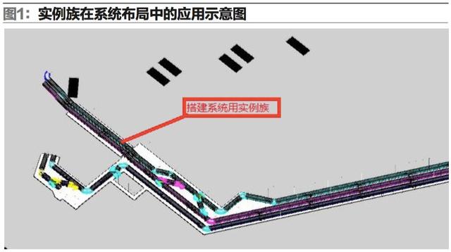 BIM技術(shù)軟件采用族模式管理,條理清晰,尤其參數(shù)族的應(yīng)用使其模型建立、模型管理、系統(tǒng)模型搭建等事半功倍,一勞永逸。一旦系統(tǒng)所需固有族、參數(shù)族建立完成后,設(shè)計(jì)人員可在沒(méi)有局域網(wǎng)的數(shù)據(jù)系統(tǒng)下進(jìn)行工作,提高了出差技術(shù)人員操作的便捷性。在自動(dòng)化物流系統(tǒng)方案設(shè)計(jì)初期,可利用參數(shù)族所生成的實(shí)例族模型,進(jìn)行整體系統(tǒng)布局信息化模型的快速搭建(如圖1),為后續(xù)工作埋下伏筆。并且,此信息化系統(tǒng)模型可進(jìn)行三維渲染,給業(yè)主更為直觀的宣傳介紹,有助于提升中標(biāo)幾率。