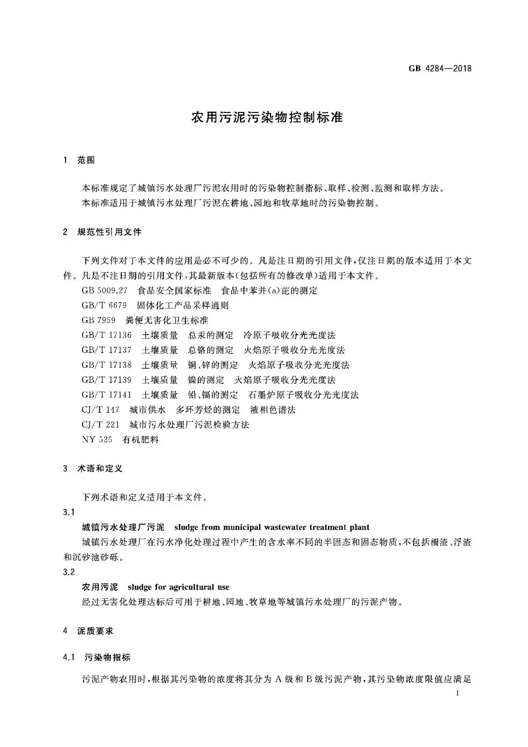 2、標準第1章“范圍”明確了該標準適用于城鎮污水處理廠污泥在耕地、園地和牧草地時的污染物控制。從字面上理解應該就是符合該標準要求的城鎮污水處理廠污泥是可以使用在耕地、園地和牧草地上面的。