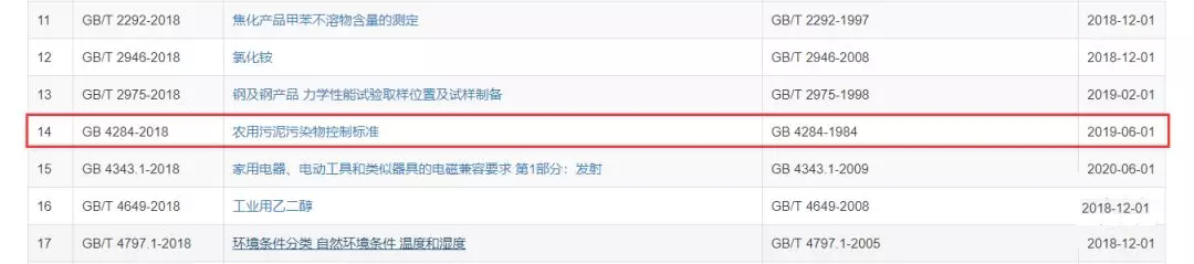農用污泥污染物控制標準(GB 4284-2018)正式發布!