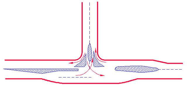 三路相交的交叉口,3個(gè)沖突點(diǎn)、3個(gè)合流點(diǎn)、分流點(diǎn)。