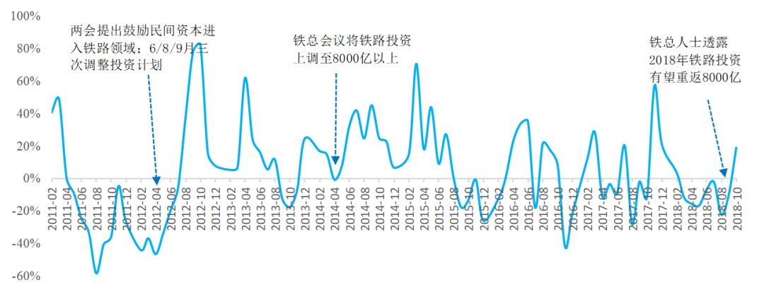 上修后鐵路投資單月增速均快速提升