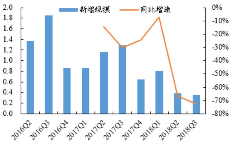 2017Q4后單季新增入庫規模持續降低(萬億)