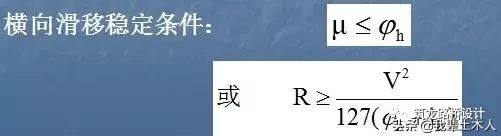 根據汽車行駛在曲線上力的平衡式計算曲線半徑: