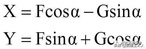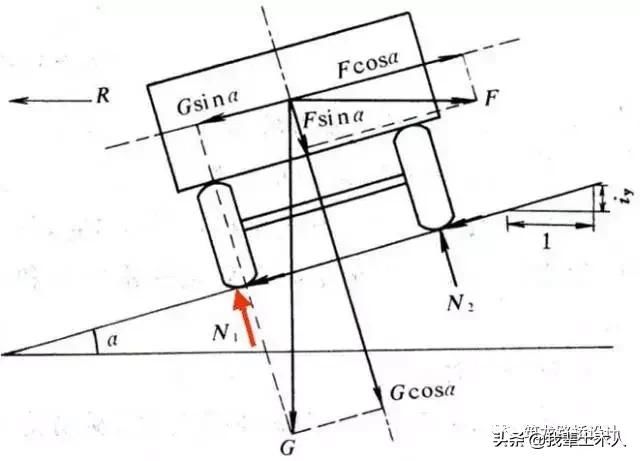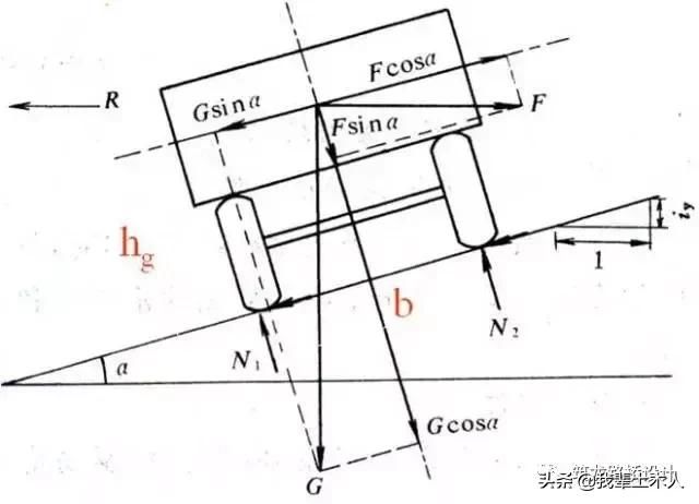 離心力F與汽車重力G分解: