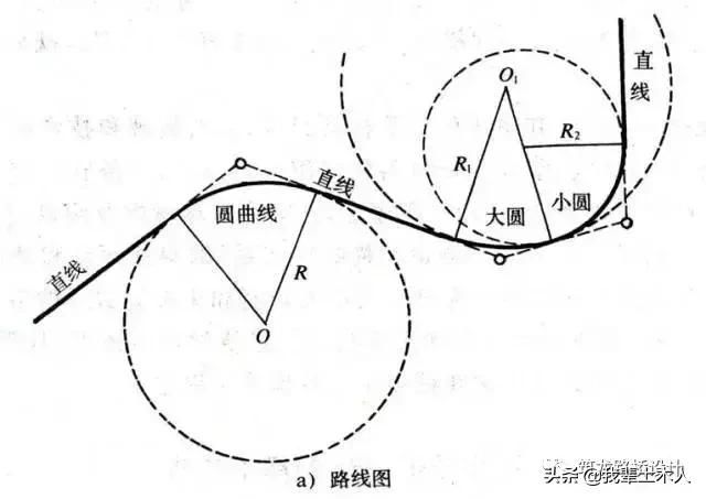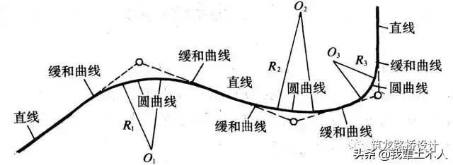 現代道路平面線形正是由上述三種基本線形構成的,稱為平面線形三要素。