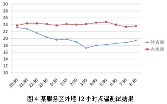 5、服務區(qū)建筑設計技術層面存在的問題,就是基本上未考慮“四節(jié)一環(huán)保”的要求,因此根本上達不到國家《公共建筑節(jié)能設計標準》規(guī)定節(jié)能50%的要求,這從我們在實地調(diào)研中對幾個服務區(qū)綜合樓的熱工測試結果(如圖4所示)可以看得出來。