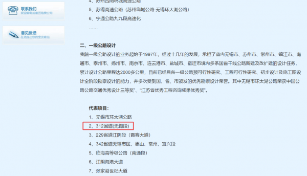 經(jīng)濟(jì)觀察網(wǎng)記者注意到,另外一家上市公司中設(shè)股份(002883.SZ)的官網(wǎng)信息顯示,在該公司的一級公路設(shè)計代表項目中,312國道(無錫段)赫然在列。