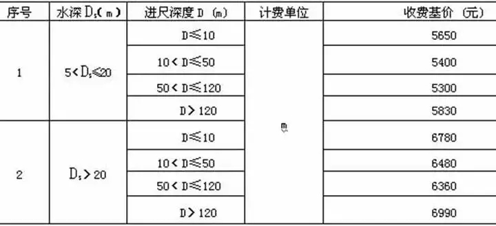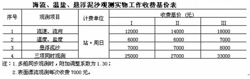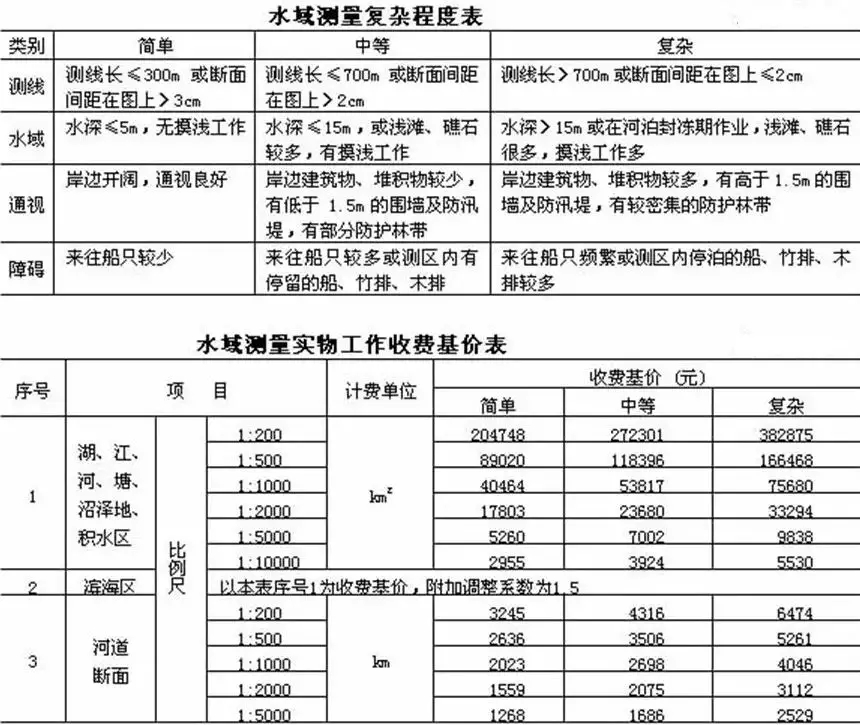 注:1.單波束測量執(zhí)行通用工程勘察水域測量收費(fèi)標(biāo)準(zhǔn);