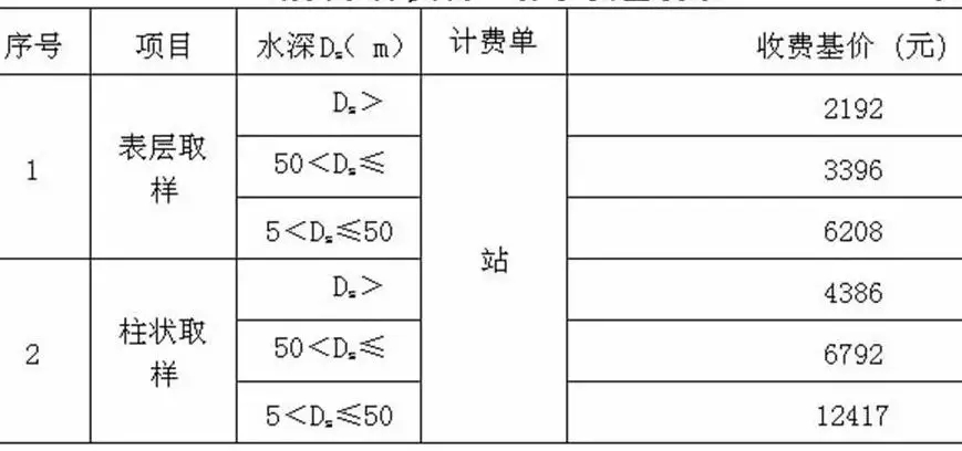 注:沉積物化學(xué)收費(fèi)基價(jià)與第四欄底質(zhì)取樣中的表層取樣一致。