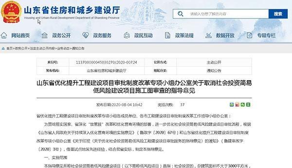 據(jù)山東省住房和城鄉(xiāng)建設廳網(wǎng)站,近日,山東省優(yōu)化提升工程建設項目審批制度改革專項小組辦公室發(fā)布《關(guān)于取消社會投資簡易低風險建設項目施工圖審查的指導意見》,內(nèi)容如下。