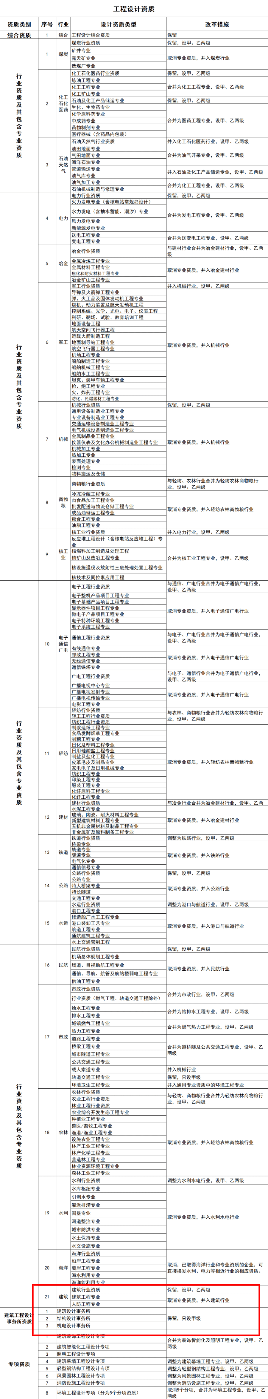 2、工程設(shè)計(jì)資質(zhì)。保留綜合資質(zhì)。對部分行業(yè)資質(zhì)進(jìn)行整合。