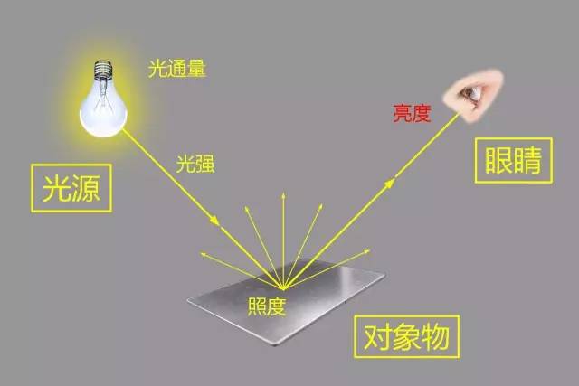 光源或燈具都有一定的光通量,在某一特定方向上產生相應的光強,光線照射到對象物上就產生了照度,光線經(jīng)過各種反射或折射更后進入人眼,此時人眼所感受到的就是亮度了。