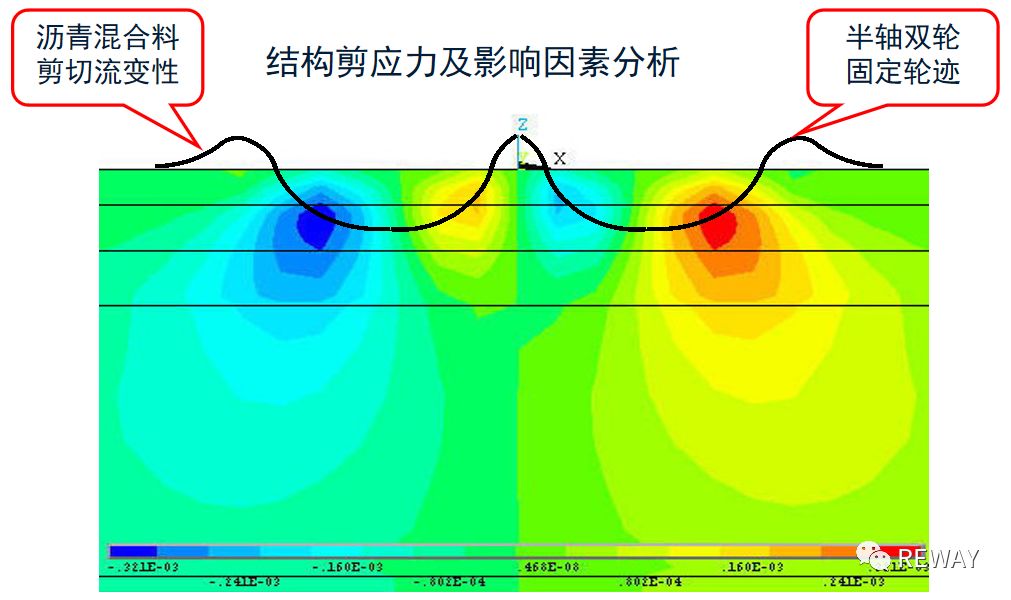 (4)加鋪瀝青面層應進行剪切應力驗算,以避免面層出現車轍、波浪、推擠、滑移和剪裂等破壞。