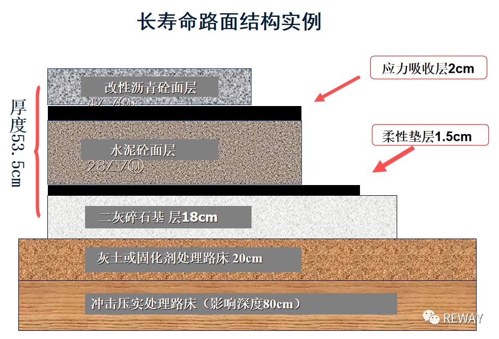 從長壽命路面概念可以看出,其結構設計必須保證路面結構在長達40年以上壽命期內不發生結構性破壞,損壞僅發生在表面層。這就對路面結構設計提出了很高的要求。