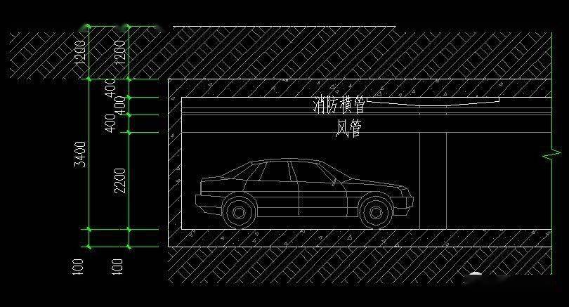非人防普通車庫凈空高度不應小于2.2m.
