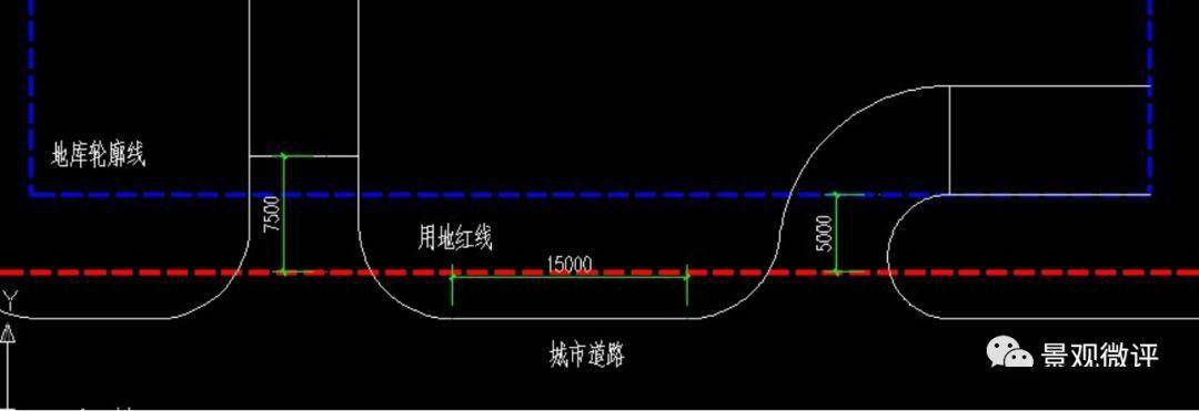 3)機動車停車庫的出入口的坡道終點面向城市道路時,其與城市道路紅線的距離不應小于7.5m,平行城市道路或與城市道路斜交角度小于75度時應后退基地的出入口不小于5.0m