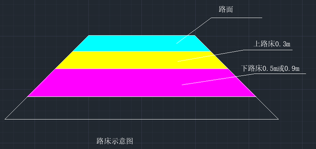 上路堤:在路床以下0.7m厚度范圍內的填方部分稱之為上路堤(結合路床示意圖,下路床以下0.7m范圍內的天放部分稱之為上路堤)。
