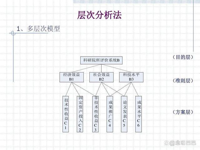 當(dāng)我們面對一個問題進行決策時,首先要分析解決這個問題的各個決定因素,并把他們梳理,建立成一定的層次結(jié)構(gòu)體系。也就是需要將決策的目標(biāo),考慮的因素和決策對象分為目標(biāo)層,準(zhǔn)則層和方案層,通過層次分析,決定方案的決策次序。