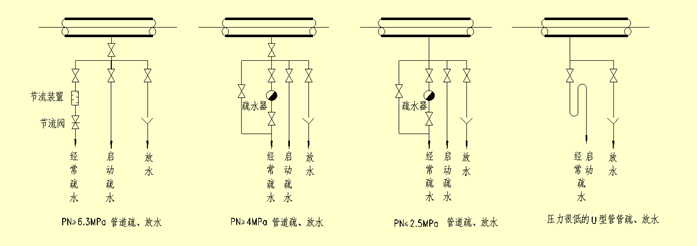 PN≥6.3MPa:管道經(jīng)常疏水宜裝設節(jié)流裝置或疏水閥,節(jié)流裝置后的閥門用節(jié)流閥;