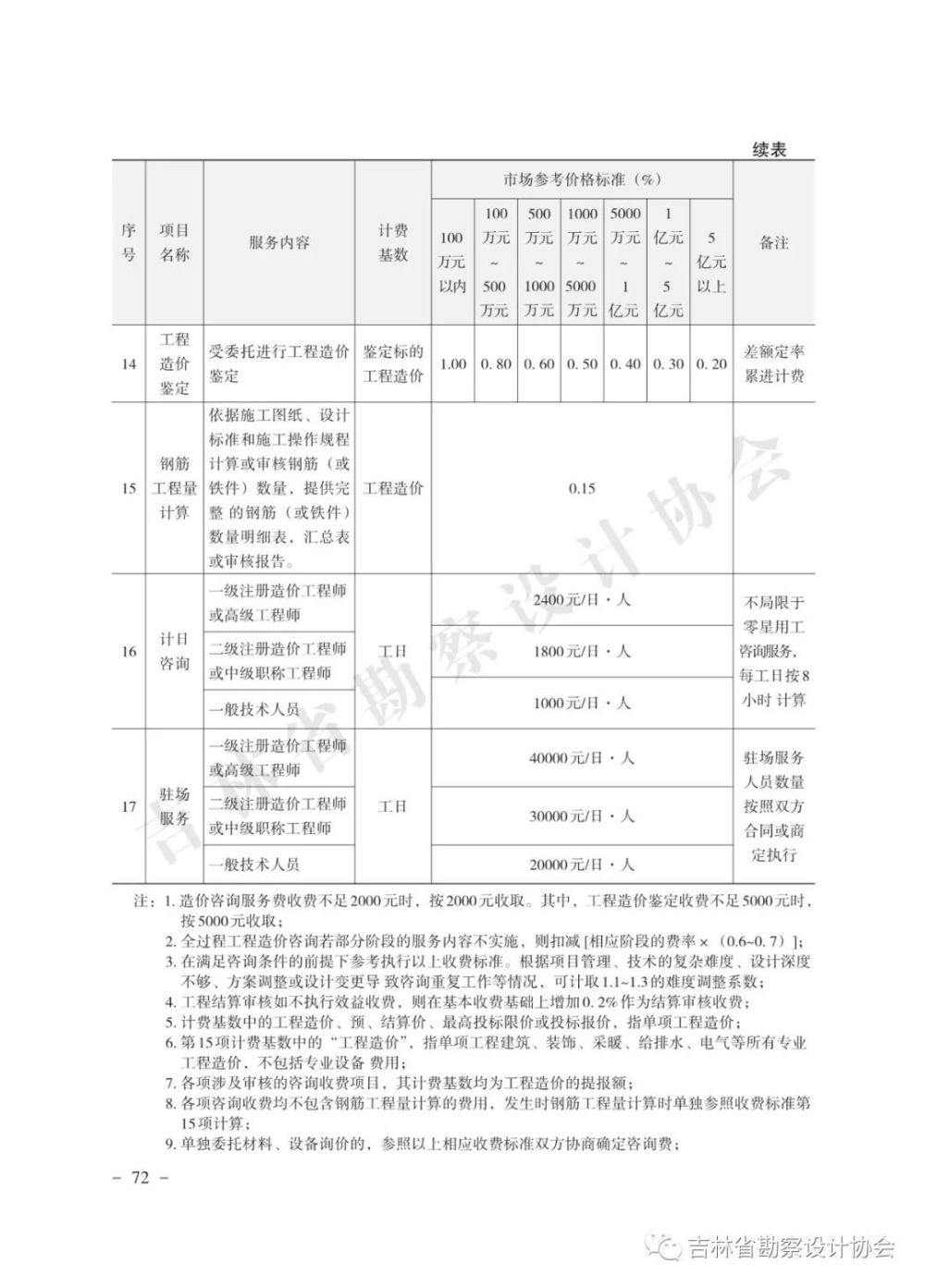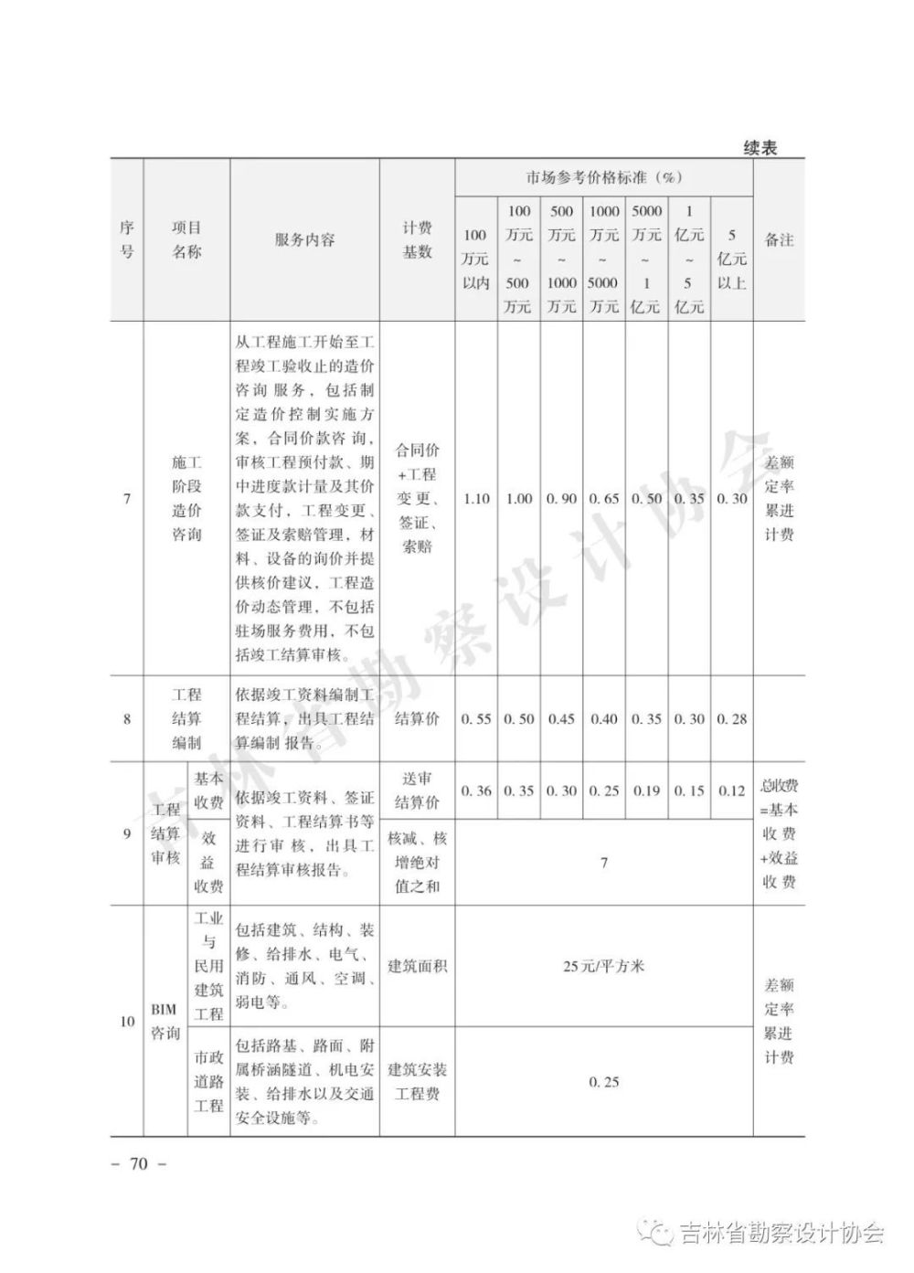 為進(jìn)一步維護(hù)公平有序的市場環(huán)境,引導(dǎo)勘察設(shè)計市場健康發(fā)展,近日,吉林省工程勘察設(shè)計行業(yè)協(xié)會發(fā)布地方工程勘察設(shè)計收費(fèi)導(dǎo)則,對工程勘察、建筑工程、全過程工程咨詢、市政工程設(shè)計收費(fèi)進(jìn)行規(guī)定。
