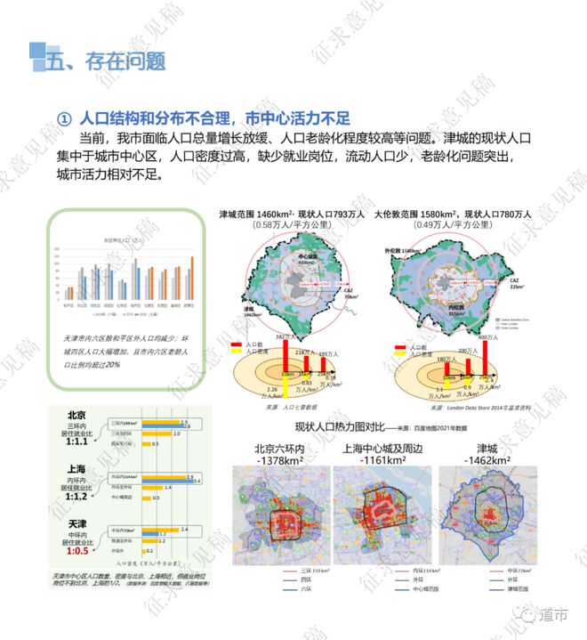 征求意見稿中,明確了目前城市發展的優勢,也干脆利落的支出存在的六大亟待解決的發展問題。一是,人口結構和分布不合理,市中心活力不足。二是,教育資源分布不均衡,造成城區交通擁堵。三是,存量土地資源豐富,但價值潛力尚未體現。四是,軌道交通客流低,地鐵與綜合開發建設的匹配度有待提升。五是,小汽車增速快,道路堵、停車難。六是,老舊小區雖不斷整治,但居住條件難以從內部改善。