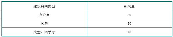 條文3.0.6 設計最小新風量應符合下列規(guī)定:1公共建筑主要房間每人所需新風量應符合表3.0.6-1規(guī)定