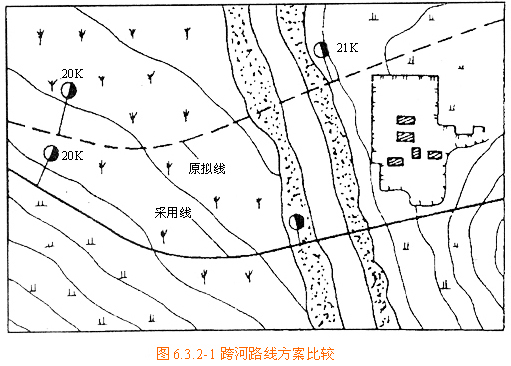 時(shí))或河溝過(guò)于彎曲的情況,可采取改河措施或改移路線,調(diào)整橋軸線與流向的夾角,以免過(guò)分增加施工困難和加大工程投資,選線時(shí)應(yīng)全面比較確定。