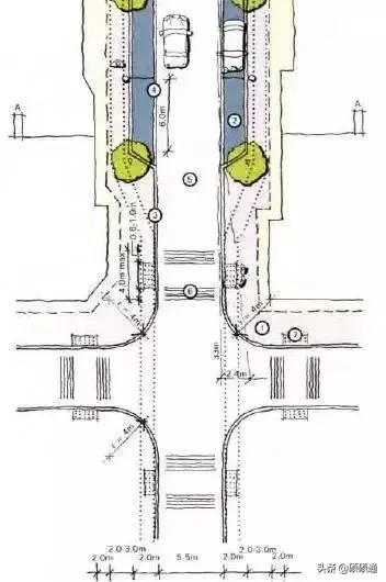 歐洲城市道路交叉口普遍采用較小的轉(zhuǎn)彎半徑,英國的《街道設(shè)計導(dǎo)則》明確提出城市道路交叉口轉(zhuǎn)彎半徑為4米。