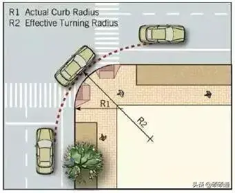 轉(zhuǎn)彎半徑,在公路設(shè)計中是非常重要的一個控制參數(shù),一般考慮安全的需要,是有一個最小值的要求。在城市道路設(shè)計中,可能是考慮車輛轉(zhuǎn)彎過程中車速較低,往往對這個設(shè)計參數(shù)并不看重,國家規(guī)范也沒有明確強制性規(guī)定。