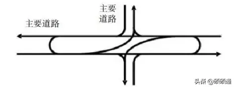 連續(xù)流交叉口的左轉(zhuǎn)和直行車輛的交通組織方式不同于傳統(tǒng)平面交叉口(見圖)。