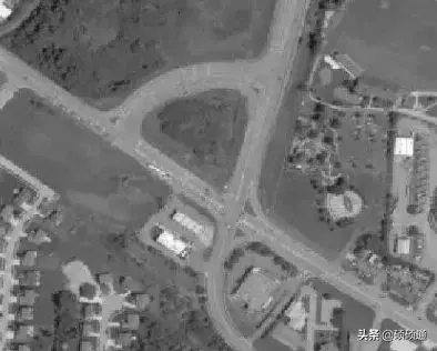 2000 年Jonathan Reid 提出一種新型交叉口設(shè)計方案,即扇形交叉口(Quadrant Roadway Intersection)。其設(shè)計思想是主交叉口禁止左轉(zhuǎn),利用十字交叉口某象限內(nèi)的連接通道組織車輛左轉(zhuǎn),簡化主交叉口信號相位,從而提高交叉口運行效率,改善主交叉口的擁堵狀況。美國某城市的扇形交叉口實景圖: