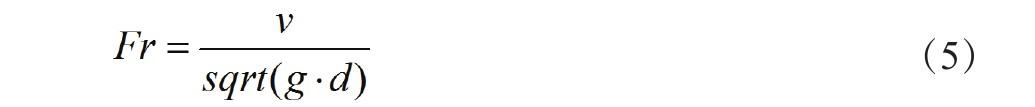 (2)確定管道尺寸。根據(jù)最大流量和施工要求,確定排水管道的直徑或斷面形狀[8]。在確定管道尺寸時,需要考慮管道自清潔速度、懸沙能力和維護(hù)性等因素。管道的自清潔速度是指在正常流量下,管道內(nèi)部能夠?qū)⒎e聚的污物、雜物和沙粒沖刷走的速度,采用Froude數(shù)可判定管道自清潔度,其計算公式見式(5)。