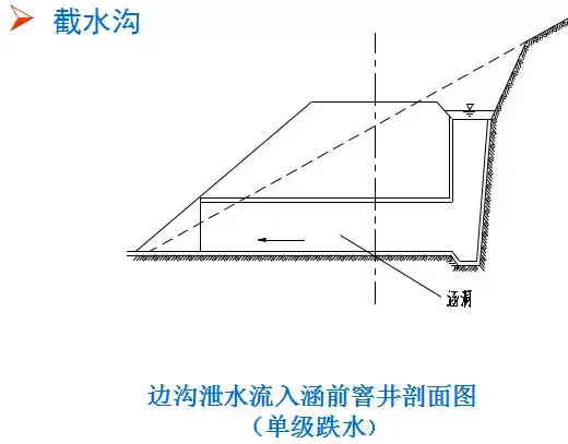 ③截水溝水流不應引入邊溝,當必須引入時,應增大邊溝橫斷面,并進行保護;