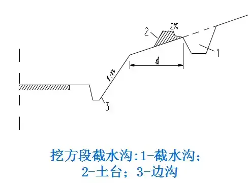 2.截水溝:又稱天溝,一般設(shè)置在挖方路基邊坡坡頂以外,或山坡路堤上方的適當?shù)攸c,用以攔截并排除路基上方流向路基的地面徑流。