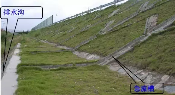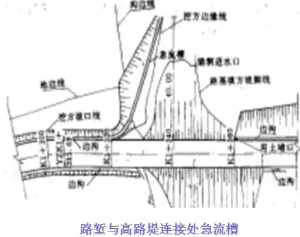 在路堤較高,邊坡坡面在未做防護而易遭受路面表面水流沖刷,或者坡面雖已采取防護措施但仍有可能受到?jīng)_刷時,應沿路肩外側(cè)邊緣設(shè)置攔水帶,匯集路面表面水,然后通過泄水口和急流槽排離路堤。