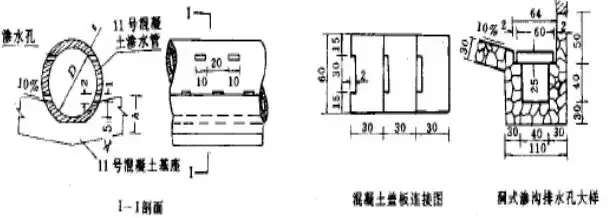 滲溝構(gòu)造:由排水層(石縫,管,洞),反濾層和封閉層所組成。封閉層:防止地面水的下滲(漿砌片石)。反濾層:匯集水流,防止水層中的土粒堵塞排水層,由大小均勻的砂石材料,分層填埋。