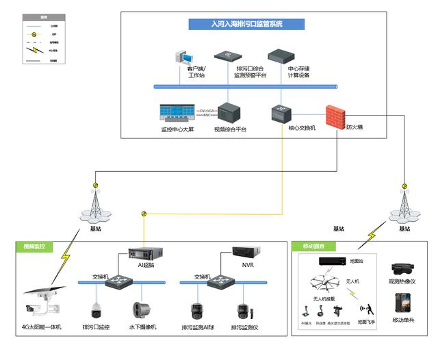 對(duì)排污口排放的受納水體采用排污監(jiān)測儀進(jìn)行水質(zhì)在線監(jiān)測。通過 4 G 太陽能攝像機(jī)、水下攝像機(jī)等設(shè)備全天候?qū)崟r(shí)監(jiān)測排污口排污狀況,發(fā)現(xiàn)違規(guī)事件及時(shí)告警。通過無人機(jī)對(duì)河道情況進(jìn)行立體化巡查,并可搭載高光譜水質(zhì)掛載,實(shí)現(xiàn)河道水質(zhì)指標(biāo)反演。通過 單兵 、觀測熱像儀等設(shè)備 , 進(jìn)行排口移動(dòng)巡查、取證記錄 。